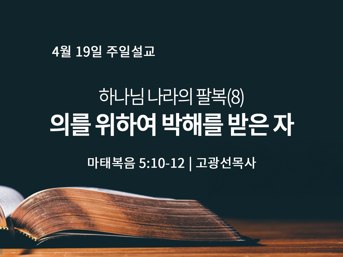 4월 19일 하나님 나라의 팔복(8) 의를 위하여 박해를 받은 자 (마 5:10-12)