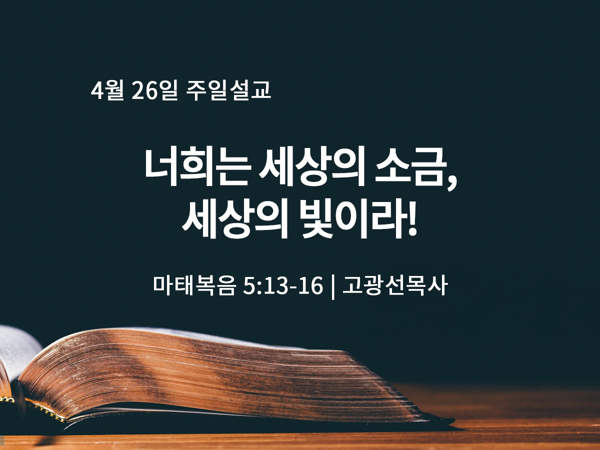 4월 26일 너희는 세상의 소금, 세상의 빛이라! (마 5:13-16)
