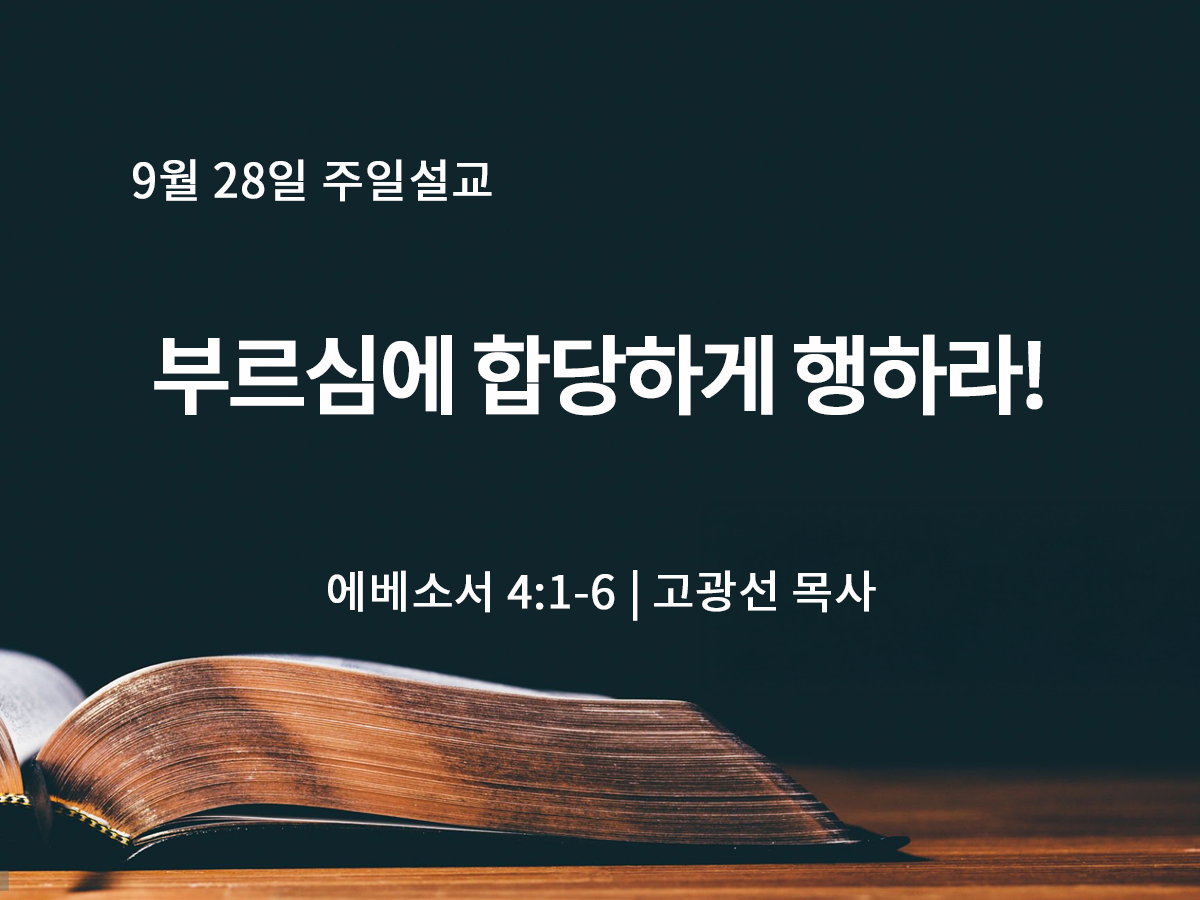9월 28일 부르심에 합당하게 행하라! (엡 4:1-6)